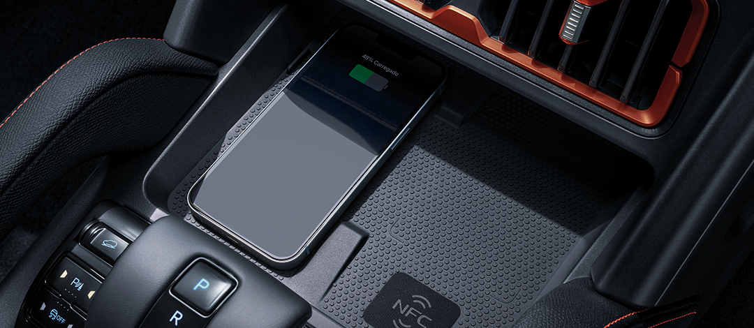 Carregamento sem fio de 50W no painel de controle para desfrutar da conectividade perfeita.